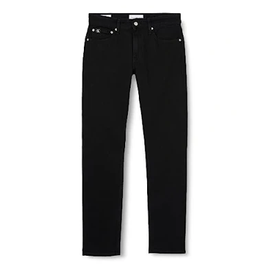 Calvin Klein Men’s Mid Rise Slim Jeans, Black (Denim Black), 30W/32L