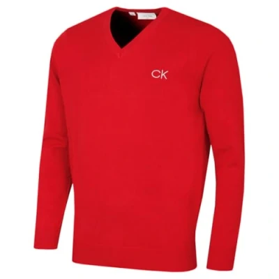 Calvin Klein Mens V Neck Tour Golf Sweater Red XXXL