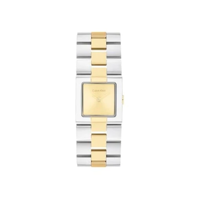 2-HAND QUARTZ MOVEMENT FOR WOMEN – Calvin Klein CK MERIDIAN combines precision and sophisticated style for everyday feminine wear with a clean, minimalist design 22 MM TWO TONE STAINLESS STEEL AND GOLD CASE WITH 5 MM THICKNESS – Case combining stainless steel and gold finish offering modernity and the signature elegance of Calvin Klein GOLD DIAL WITH SUNRAY EFFECT – Minimalist gold dial with sunray finish that enhances the contemporary design of the CK MERIDIAN collection TWO TONE STAINLESS STEEL AND GOLD BRACELET – Integrated bracelet combining stainless steel and gold with jewelry-inspired grid links and a rectangular silhouette, secured with a clasp closure for comfort and sophistication signed by Calvin Klein 3 ATM WATER RESISTANCE – Ideal for splash protection and daily wear, maintaining the minimalist elegance that defines Calvin Klein and its CK MERIDIAN collection