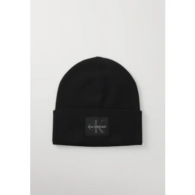 Calvin Klein Monologo Patch Beanie Unisex Beanie, Size: One Size, Black