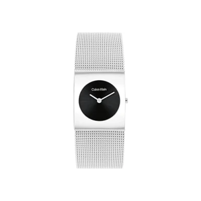Geometric-Inspired Case with Quartz Movement: The CK Pulse collection features a standout geometric-shaped case, paired with a precise two-hand quartz movement, embodying CK's renowned minimalistic and understated aesthetic. Case thickness 7.6mm / Case Diameter 26mm Subtle Black Sunray Dial: The dial of the CK Pulse watch showcases a subtle black sunray effect, adding a touch of elegance and modernity to its bold, clean lines. Stainless Steel Mesh Bracelet: Complementing the watch's design, the stainless steel mesh bracelet offers a stylish and comfortable fit, perfect for the modern, sophisticated look. Water Resistance: 3ATM Faucet spray or rain won’t hurt them as long as the case, crown and crystal remain intact.