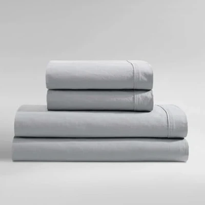 Calvin Klein - Queen Bed Sheets, Relaxed Garment Washed Cotton Percale Bedding Set with Matching Pillowcases, Deep Pockets, Oeko-TEX Certified (Washed Percale Steel Blue, Queen)