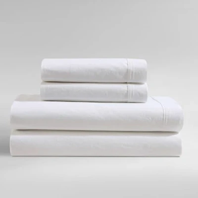 CALVIN KLEIN HOME: A collection of timeless and versatile modern pieces that will be your go-to bedding accessories, season after season. QUALITY: Made from 100% cotton for exceptional comfort, our bed sheets feature a soft and relaxed feel with a 200-thread count percale weave, prewashed for added softness. The breathable material is perfect for hot sleepers, ensuring a cool night's rest. The elegant 1.75" Z-hem finish adds a touch of sophistication, while the fitted sheets include long and short side labels for easy setup. EASY CARE: Wash in cold water with like colors on a gentle cycle with non-chlorine brighteners and liquid detergent without bleach. Shake fabric out between cycles, don't overload and tumble dry on medium heat. Remove from the dryer to prevent wrinkles and use a warm iron as needed. SET INCLUDES: (1) Full/Queen Flat Sheet- 94"W x 102"L; (1) ElasticizedFitted Sheet- 60"W x 80"L; (2) Standard Pillowcases- 32"W x 21"L; 18" Pocket Depth EXPLORE MORE COLLECTIONS: Discover the full assortment of bedding and home essentials in our Brand Store—curated for timeless style and everyday comfort.