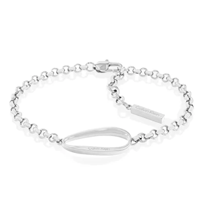 Ladies Chain Bracelet by Calvin Klein Material: Polished Stainless Steel Inner circumference: 16 cm Embellished with etched Calvin Klein logo Closure: Lobster Claw Clasp