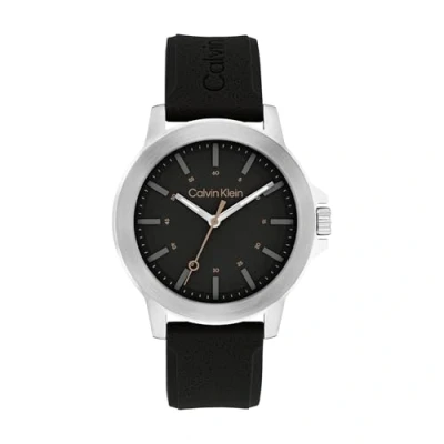 Calvin Klein Three Hand Quartz Movement Watch for Men CK Reset Collection with Black Silicone Bracelet 25200471