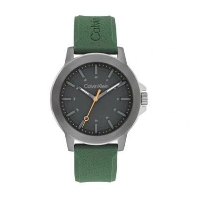 Calvin Klein Three Hand Quartz Movement Watch for Men CK Reset Collection with Green Silicone Bracelet 25200472