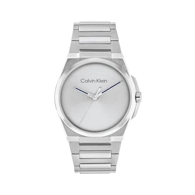 3-HAND QUARTZ MOVEMENT FOR MEN – The Calvin Klein META-MINIMAL watch delivers precise timekeeping and modern style with a reliable quartz movement and classic functionality 41MM STAINLESS STEEL CASE – Integrated case with architectural design and elongated crown protection combines durability and elegance in a 9 mm profile CIRCULAR BRUSHED SILVER SUNRAY DIAL – Dial with a subtle and contemporary circular brushed finish, reflecting the minimalistic aesthetic of the META-MINIMAL collection STAINLESS STEEL BRACELET WITH CLASP – Durable and sleek silver stainless steel bracelet with a clasp closure for a secure and comfortable fit 3 ATM WATER RESISTANT – Designed to withstand light splashes, this Calvin Klein META-MINIMAL watch balances urban functionality with sophisticated style