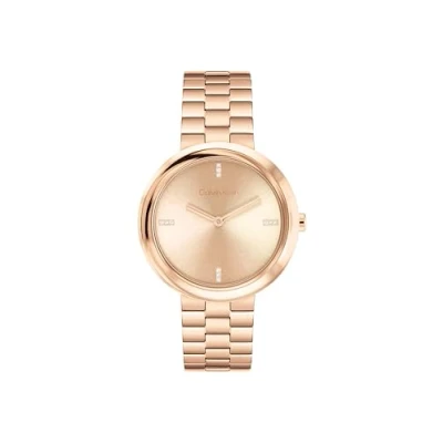 2-HAND QUARTZ MOVEMENT FOR WOMEN – The Calvin Klein TWISTED BEZEL watch blends precision and minimal elegance with a modern everyday design 34MM ROSE GOLD STAINLESS STEEL CASE – A 34 mm rose gold stainless steel case with a slim 7.7 mm profile and sculpted twisted bezel for a distinctive, refined look ROSE GOLD SUNRAY DIAL – The rose gold sunray dial of the Calvin Klein TWISTED BEZEL features baguette crystal markers that catch the light beautifully ROSE GOLD STAINLESS STEEL BRACELET – Sleek link bracelet in rose gold stainless steel with clasp closure, designed for a comfortable and polished fit 3 ATM WATER RESISTANCE – Stylishly crafted by Calvin Klein for everyday wear with 3 ATM water resistance, perfect for light splashes