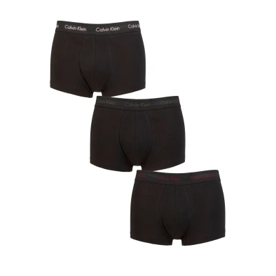 Underwear designed to be worn lower on the hip, this boxed triple pack of Calvin Klein Low Rise Trunks contains three pairs of quality soft cotton rich stretch jersey trunks, each with a different colour contrast waistband woven with the brand logo. These soft, light feel Calvin Klein Low Rise Trunks have short 4cm inseam legs, a supportive, shaped double layer pouch and flat overclock seams for added comfort and freedom from chafing.