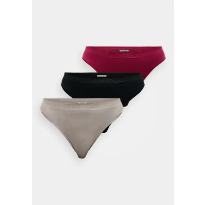 Calvin Klein Underwear Thong 3 PACK Thong, Women's, Size: Medium, Black/mink/beet red