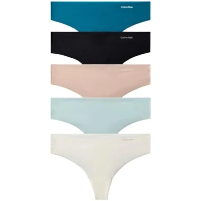 Calvin Klein Underwear Thong Invisibles 5 PACK Thong, Women's, Size: XL, Teal marine/cloud blue/black/ ivory
