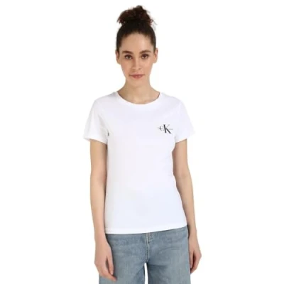 Calvin Klein Women's 2 Pack Monologo Slim Short Sleeve Round Neck T Shirts, Multicolor (Leek Green/Bright White), S
