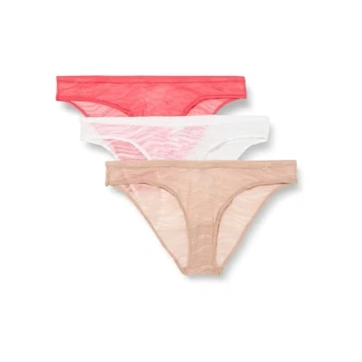 Calvin Klein Women's 3 Pack Bikini (Low rise) 000qd5203e Panties, Multicolour (Calypso Coral/Cedar/White), L