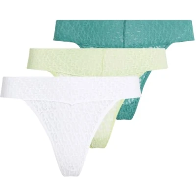 Calvin Klein Women's 3 Pack Low Rise Bikini Briefs with Lace, Multicolor (White/Highline Green/Lively Teal), S