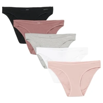 Calvin Klein Women's 5 Pack Bikini Briefs Underwear, Multicolor (Blk/Vintge Pink/Subdd/White/Gry Htr), XL
