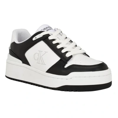 An easy-to-style essential, the Calvin Klein Ashier sneaker is a wardrobe must have. Designed with a retro-inspired silhouette, these sneakers feature a platform design, round toe and logo detailing on the side of the sneaker. THe perfect wardrobe staple! Round Toe Lace up Closure Imported