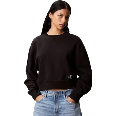 Calvin Klein Women’s Badge Logo Cropped Sweatshirt, Black (Black), S