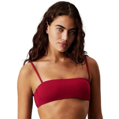 Calvin Klein Women’s Bandeau Bikini Top with Removable Padding, Red (Quaint Berry), XL