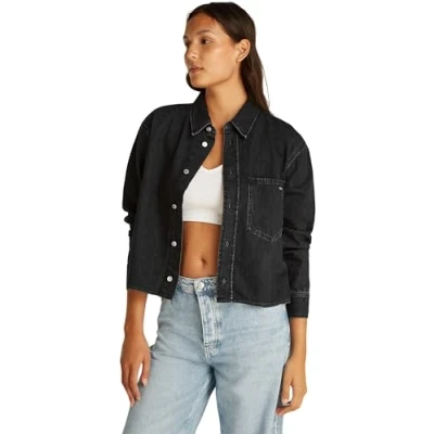Calvin Klein Women’s Cropped Dad Denim Shirt with Chest Pocket, Black (Denim Black), XL