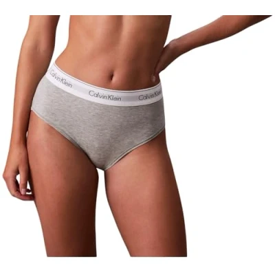 Calvin Klein Women’s High Waist Bikini Briefs with Logo Waistband, Grey (Grey Heather), L