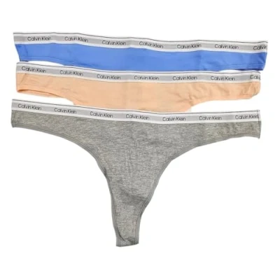 Calvin Klein Women's Modern Logo Thong 3 Pack, Glacier/Melon Frenzy/Grey Heather, S