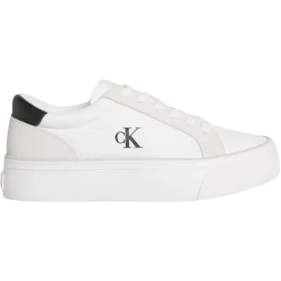 Calvin Klein Women’s Nylon Mix Logo Flatform Vulcanised Trainers, White (Bright White/Black), 6
