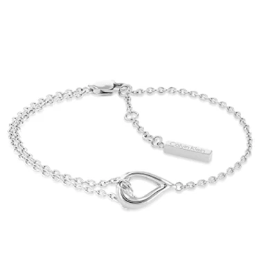 Sculpted sophistication. Bracelet featuring sculpted water droplet design. Distinctive style and character by Calvin Klein Material: Polished Stainless Steel Inner circumference: 18.5 cm Embellished with Etched Calvin Klein logo on the extender Closure: Lobster Claw Clasp