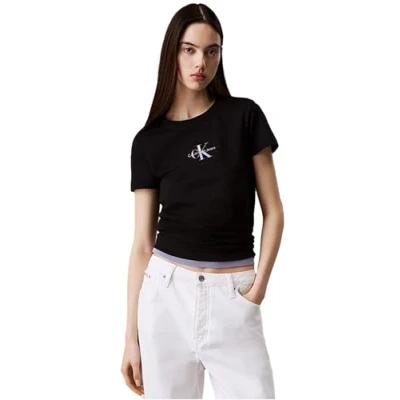 Calvin Klein Women’s Short Sleeve Gradient Monologo Slim Fit T Shirt, Black (Ck Black), S