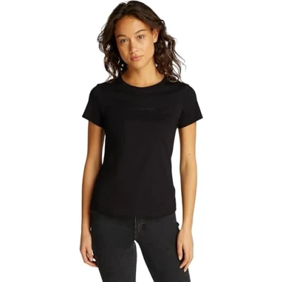 Calvin Klein Women’s Short Sleeve Slim Fit Institutional Graphic T Shirt, Black (Ck Black), XXS