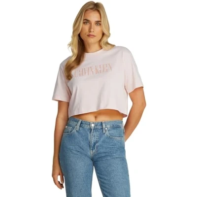 Calvin Klein Women’s Short Sleeve Varsity Boxy Cropped T Shirt, Pink (Silver Peony), XL