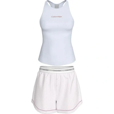 Calvin Klein Women's V DAY TANK SHORT SET LV00QS7580 Set, White (CLASSIC WHT W ECHO STRIPE CLASSIC), S