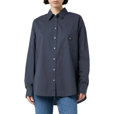 Calvin Klein Women’s Woven Label Relaxed Fit Shirt, Blue (India Ink), S
