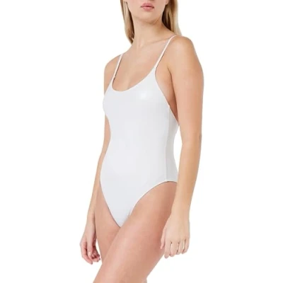 MODERN DESIGN: the trendy Calvin Klein monogram and the low back make this swim suit a real eye-catcher, the ideal wear for all those who want to showcase their style pool-side PERFECT FIT: thanks to its flattering fit, this fully lined one-piece with scoop neckline offers not only an ideal fit but also comfortable support FASHIONABLE AND VERSATILE: with its fashionable design, this swim suit is the ideal choice for swimming or sunbathing, it has a pleasant feel while making you look fashionable HIGH-QUALITY MATERIAL: this product is made of recycled nylon or polyamide (83 percent), elastane (17 percent) EXCITING AND NEAT: created in 1968, the Calvin Klein lifestyle brand is known for its signature look and has been inspiring the fashion world ever since, the American brand is all about minimalist aesthetics