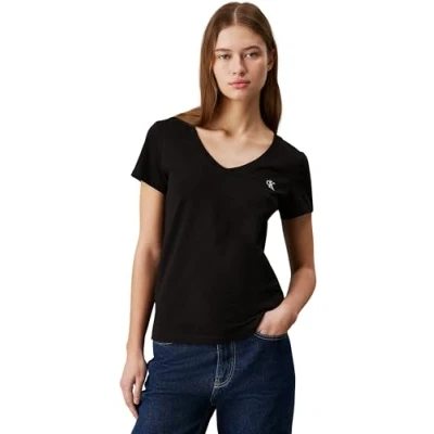 Calvin Klein Women Short Sleeve T Shirt Ck Embroidery V Neck, Black (Ck Black), XXS