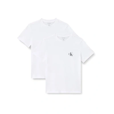 Calvin Klein Women’s 2 Pack Short Sleeve Round Neck Logo T Shirts, White (Brilliant White), M