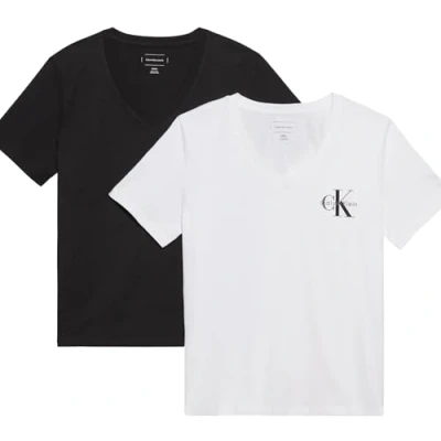 Calvin Klein Women’s 2 Pack Short Sleeve V Neck Logo T Shirts, Multicolor (Black/Brilliant White), S