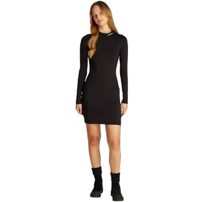 Calvin Klein Women's Elastic Milano Logo Long Sleeve Dress, Black (Ck Black), S