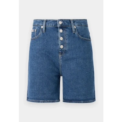 Calvin Klein Women's Mom Denim Shorts with Button Placket, Blue (Denim Dark), 26W