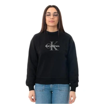 Calvin Klein Women’s Round Neck Monologo French Terry Sweatshirt, Black (Black), XXS