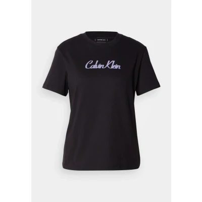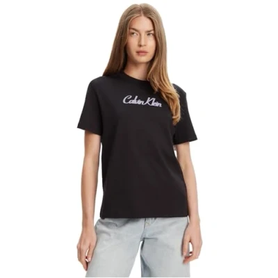 Calvin Klein Women’s Short Sleeve Classic Logo Cotton T Shirt, Black (Black), L