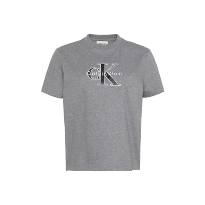 Calvin Klein Women’s Short Sleeve Round Neck Hero Classic Monologo T Shirt, Grey (B30 Heather), L