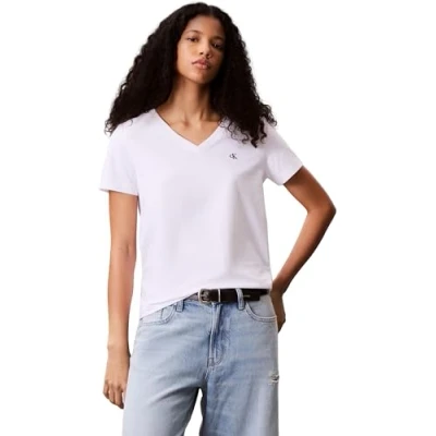 Calvin Klein Women’s Short Sleeve V Neck Archive Jersey T Shirt, White (Brilliant White), XXL