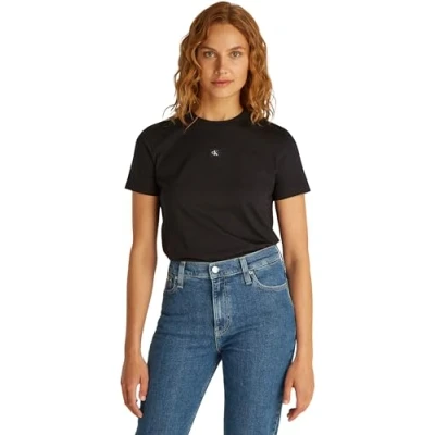 Calvin Klein Women’s Short Sleeve Woven Label Regular Fit Cotton T Shirt, Black (Ck Black), L