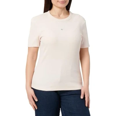 Calvin Klein Women’s Short Sleeve Woven Label Slim Fit Rib T Shirt, Pink (Silver Peony), M