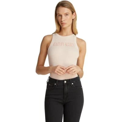 Calvin Klein Women’s Varsity Rib Slim Fit Tank Top, Beige (Brazilian Sand), M