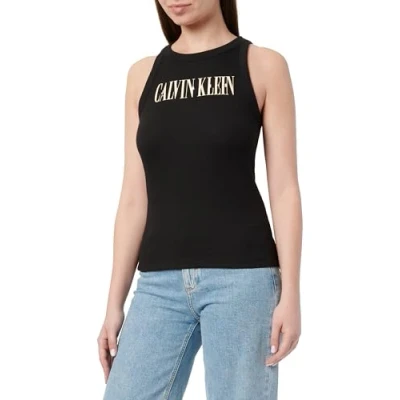 Calvin Klein Women’s Varsity Rib Slim Fit Tank Top, Black (Ck Black), XS