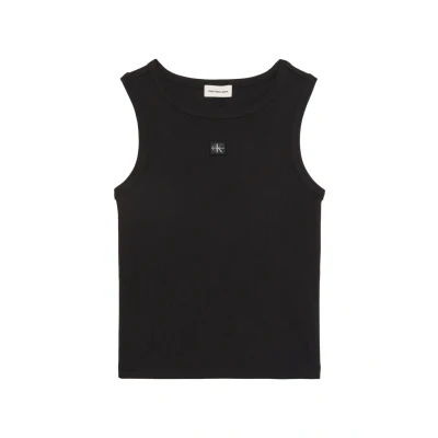 Calvin Klein Women’s Woven Label Cotton Rib Tank Top with Logo, Black (Black), XXS