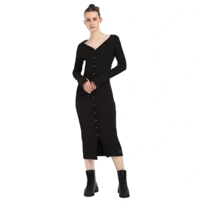 Calvin Klein Women’s Woven Label Ribbed Dress with Button Placket, Black (Ck Black), M