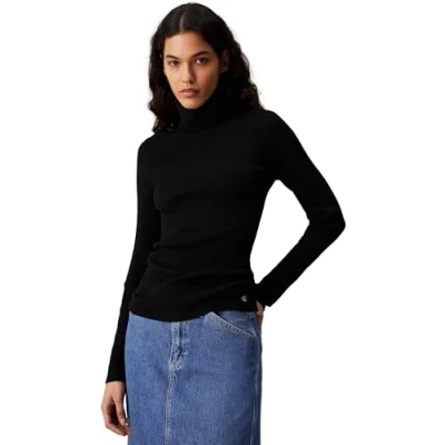 Calvin Klein Women's Woven Roll Neck Jumper, Black (Ck Black), S