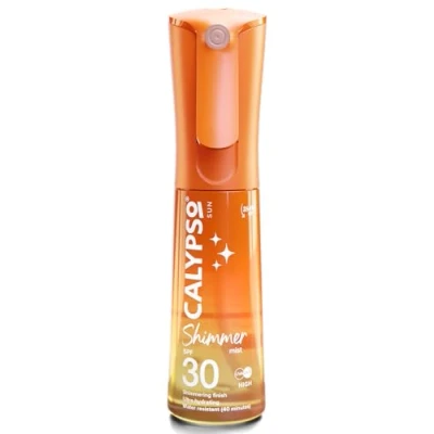 Calypso Shimmer Mist SPF30, Shimmering Finish, Protective Water Resistant Sun Spray, Non sticky, Transparent Sunscreen, 100ml